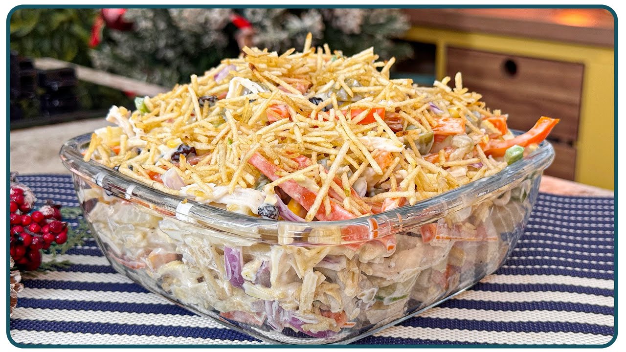 Um delicioso e fácil Salpicão de Natal, ideal para as festas natalinas. Com 15 ingredientes, você fará uma salada tropical que todos vão adorar!